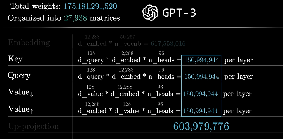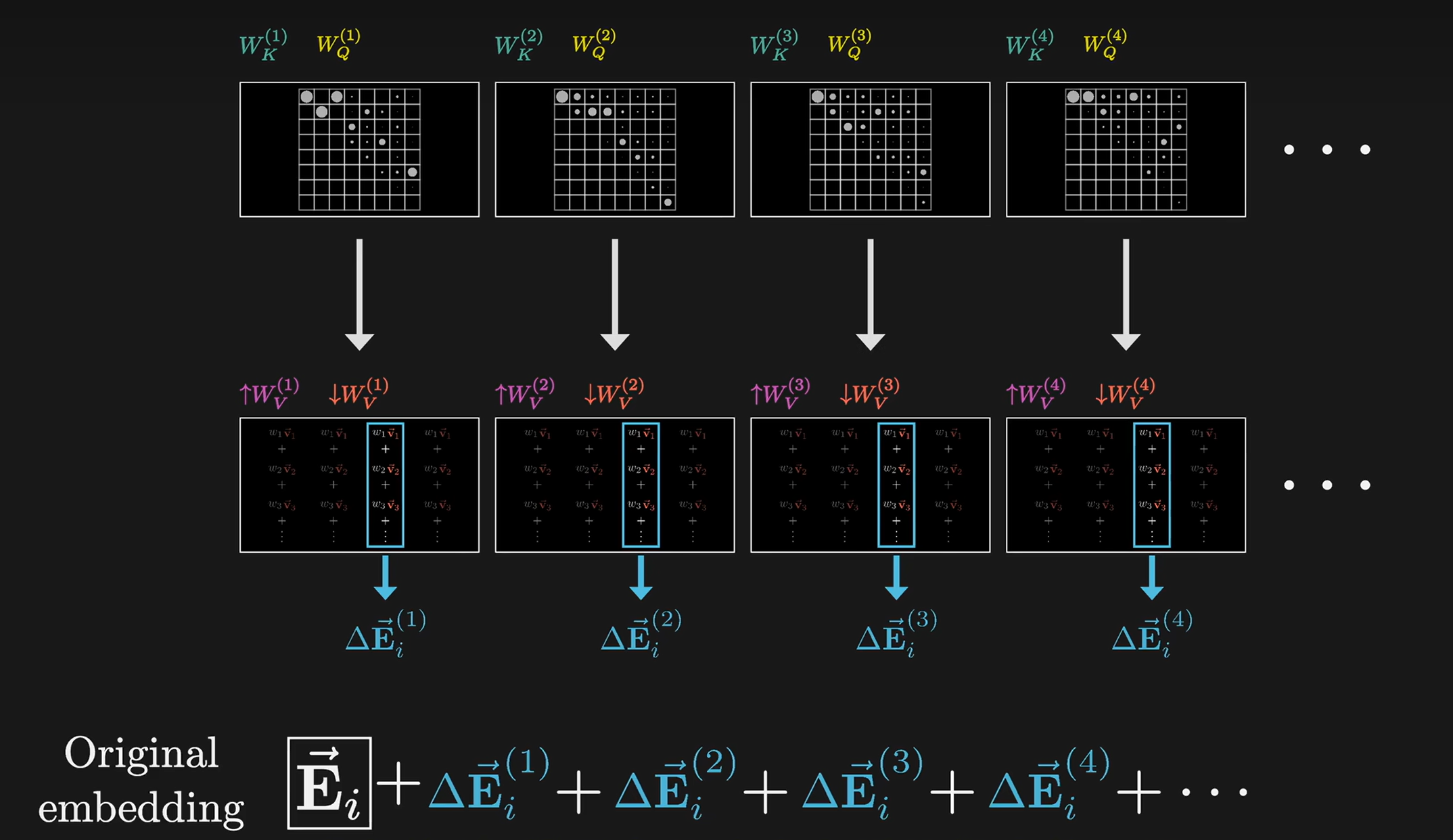 由于更新词义的方式肯定是有区别的,事实上GPT-3内有96种查询方式,也就有96个\(W_K^{(i)},W_Q^{(i)}\)