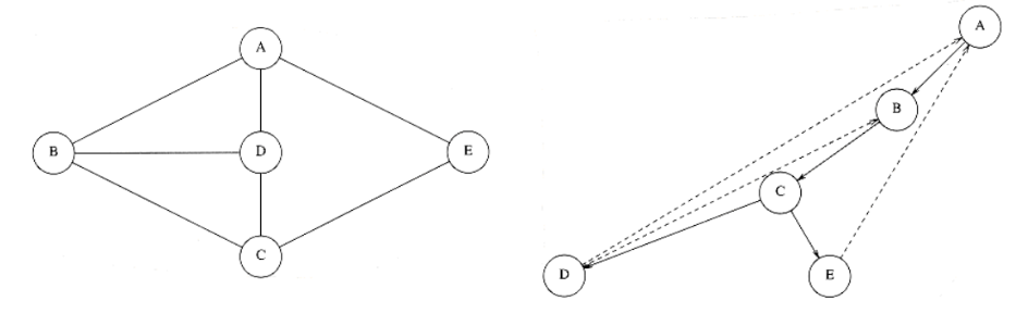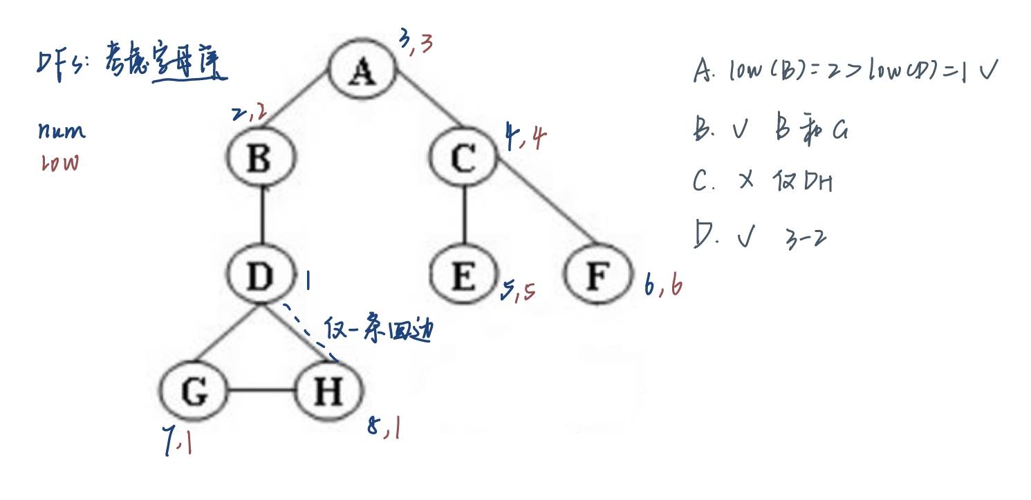 - To find the articulation points for following graph by depth-first search tree start from node D, which of the following statement is wrong?