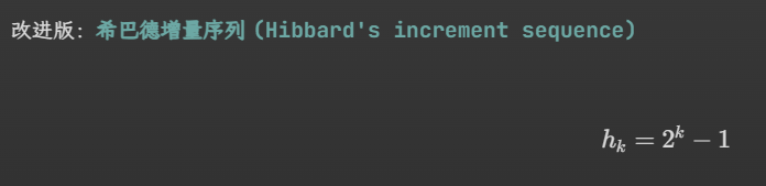 | 希尔排序 | O(n¹·³-n¹·⁵) | O(n²) | O(1) | 不稳定 | 分组的插入排序,缩小增量 |
