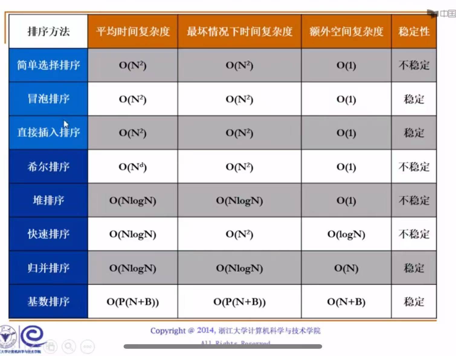 | 归并(Merge) | O(NlogN) | O(NlogN) | O(N) | 稳定 |