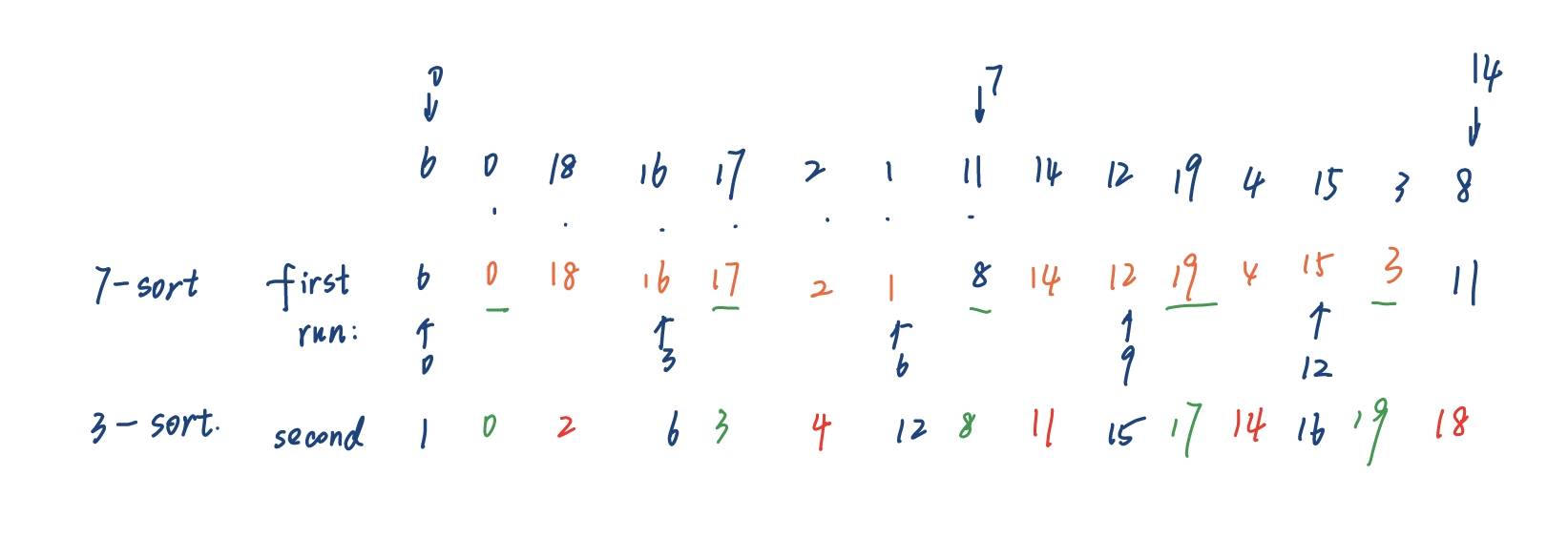 When sorting the array {6, 0, 18, 16, 17, 2, 1, 11, 14, 12, 19, 4, 15, 3, 8} in ascending order by Shell Sort using Hibbard’s increments (\(h_k = 2^k - 1\)), the sorting result after the first run is {6, 0, 12, 16, 4, 2, 1, 8, 14, 18, 19, 17, 15, 3, 11} and that after the second run is {1, 0, 2, 6, 3, 11, 15, 4, 12, 16, 8, 14, 18, 19, 17}. (T/F)