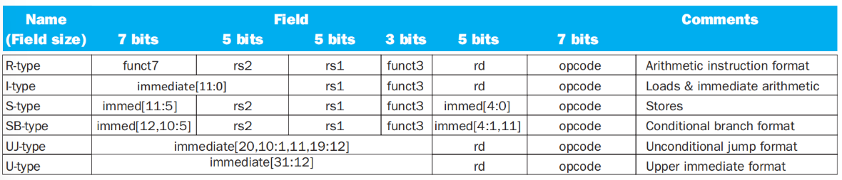 | SB-type | immed[12,10:5] | rs2 | rs1 | funct3 | immed[4:1,11] | opcode |
