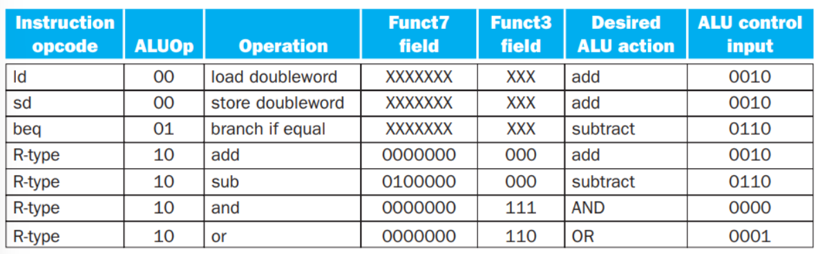 根据这个真值表构造门电路,就可以构造出 ALU control 单元了。如图中所示,该单元依赖 Control 单元给出的 ALUOp 信号以及 I[30, 14:2] :