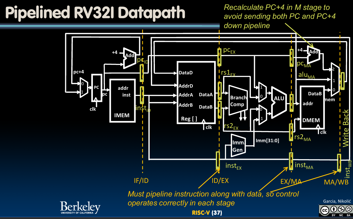 每个流水线寄存器都必须保存与在该特定阶段执行的指令相对应的位,因此该阶段需要保存指令+对应的控制位。